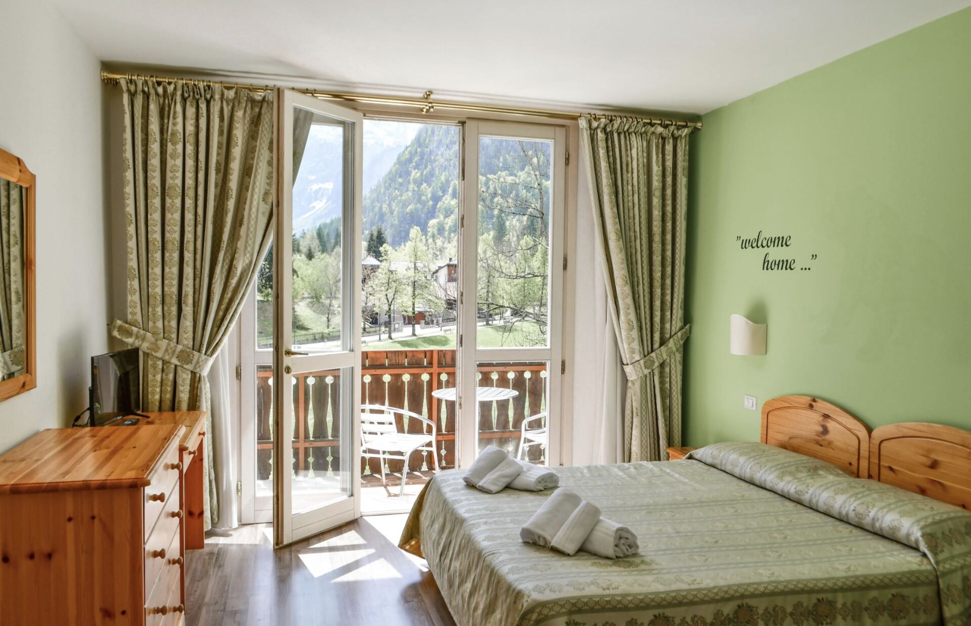 Chalet di montagna circondato dalla natura. Dall'ampio terrazzo di cui è dotata ciascuna delle camere si godrà dello spettacolo dei boschi circostanti, custoditi e protetti dalle cime innevate dei monti. Le tinte calde e avvolgenti degli interni vi accoglieranno nelle vostre stanze, arredate secondo il gusto tipico delle case saurane, dove il re è il legno e dove ogni dettaglio è stato studiato per garantirvi il massimo confort in un contesto naturalistico intatto. Immergiti nel verde della natura e lasciati incantare dalla magia di Sauris.